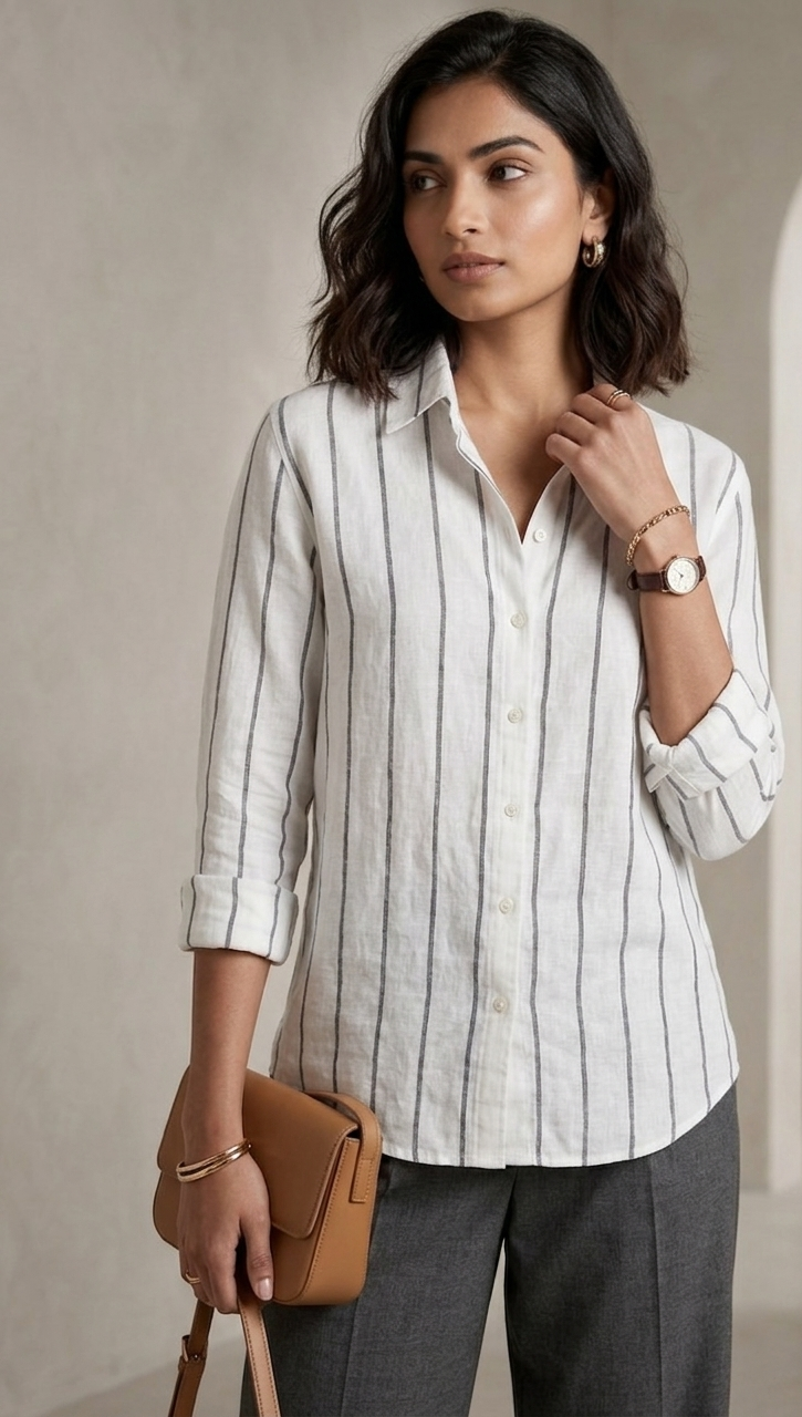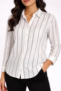 - CLASSIC COLLARED DESIGN: Features a neat, structured collar and a full button-down front for a polished, smart-casual look.